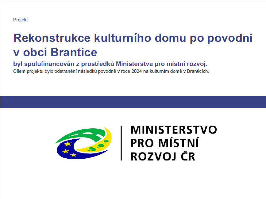 Rekonstrukce kulturního domu po povodni v obci Brantice