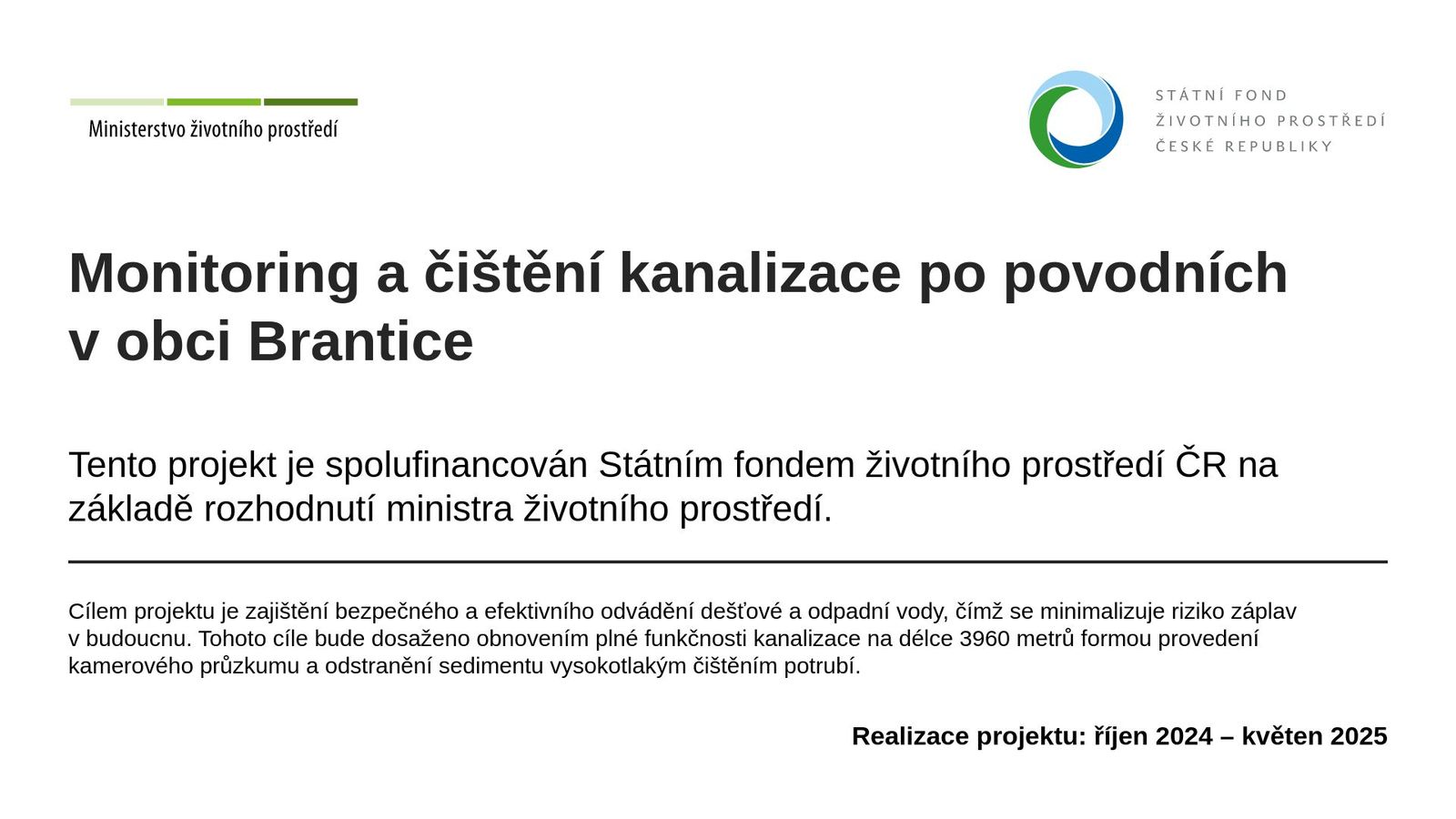 Monitoring a čistění kanalizace po povodních v obci Brantice