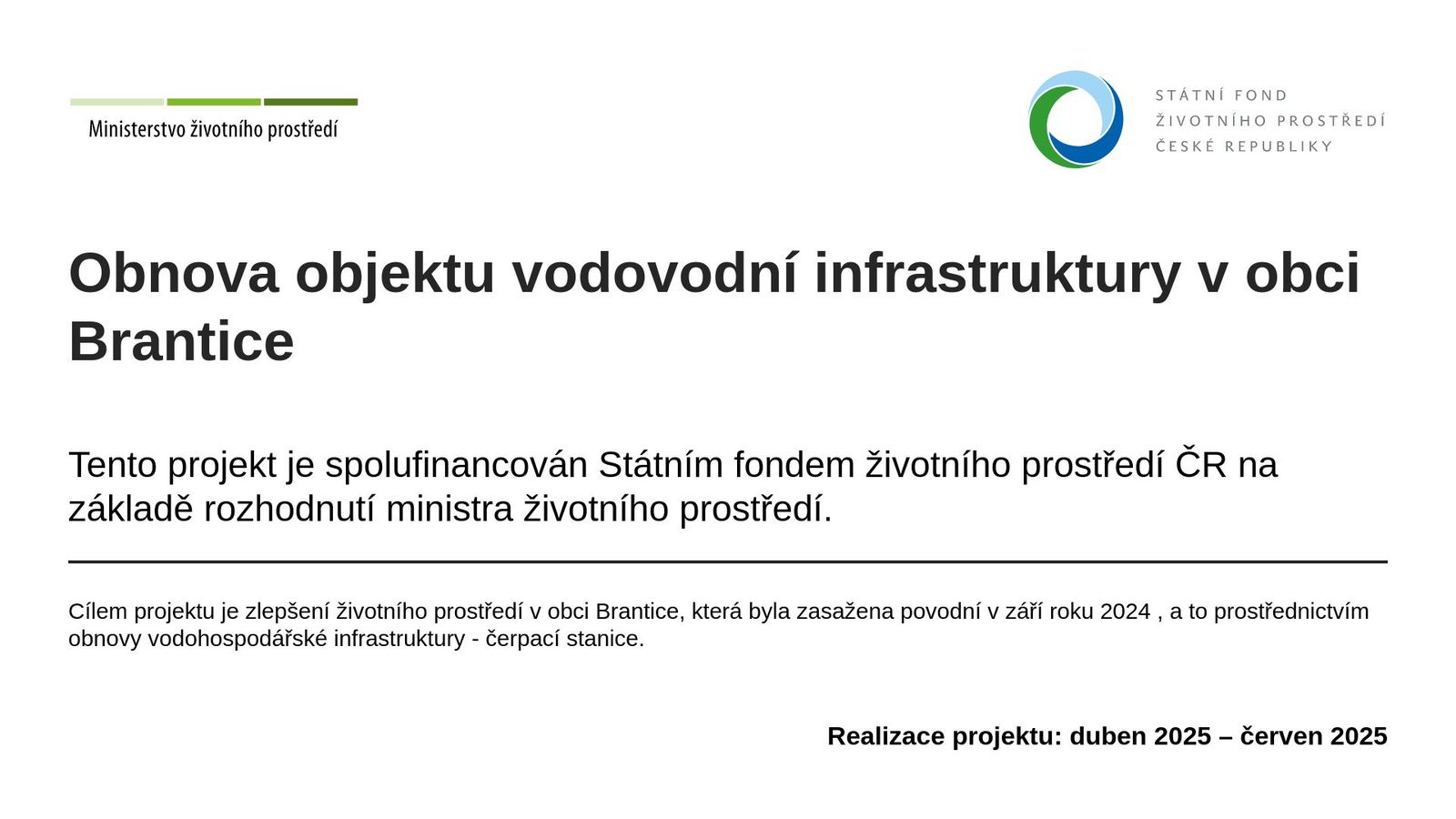 Obnova objektu vodovodní infrastruktury v obci Brantice