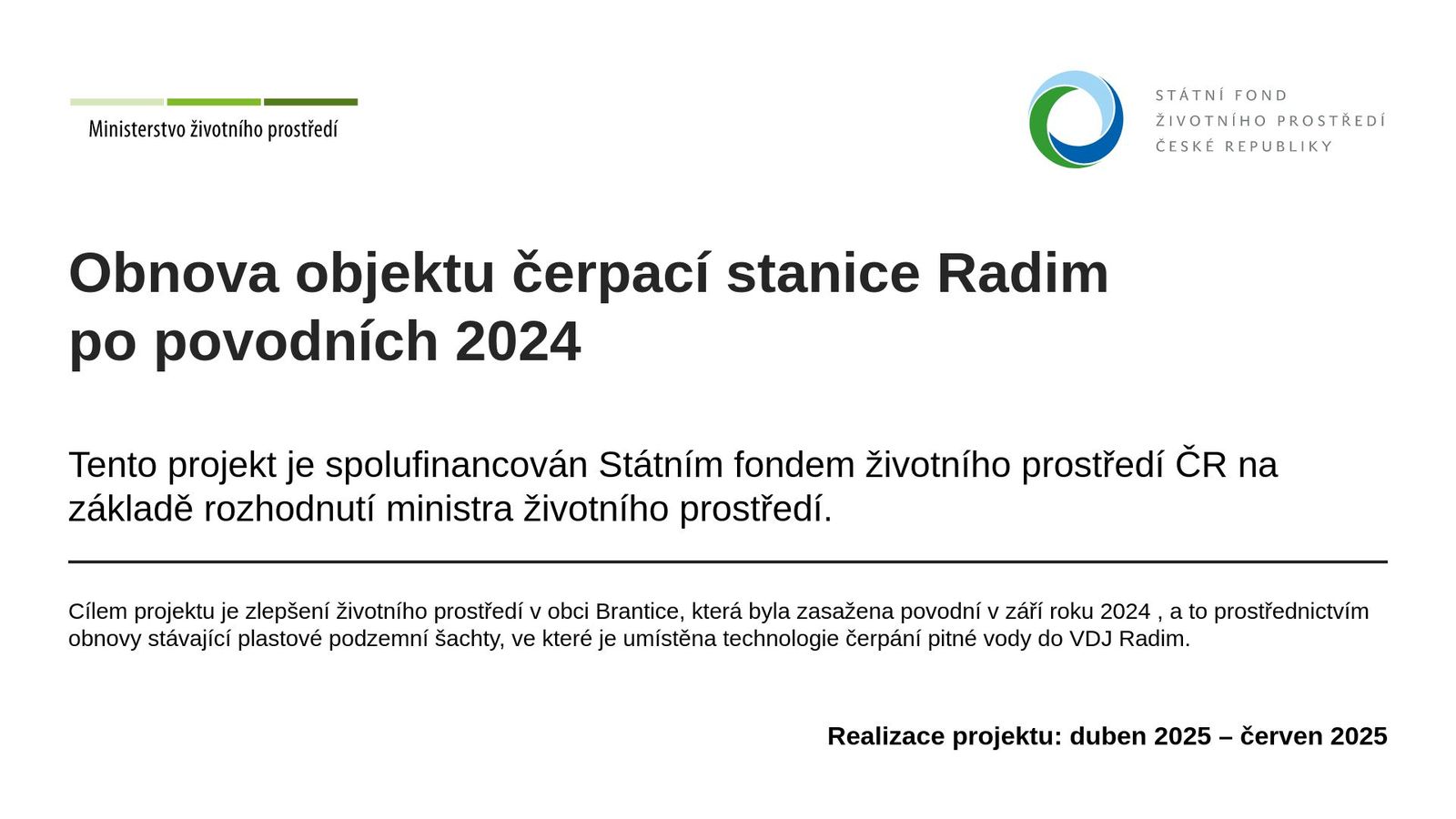 Obnova objektu čerpací stanice Radim po povodních 2024