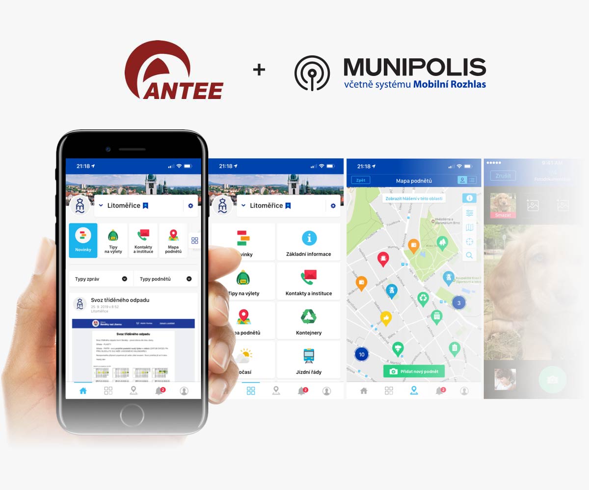 Součástí systému je i stejnojmenná aplikace Mobilní Rozhlas, která u zapojených samospráv vzniká ve spolupráci společnosti Antee s Mobilním Rozhlasem. S aplikací budete mít všechny informace a kontakty kdykoli při ruce.